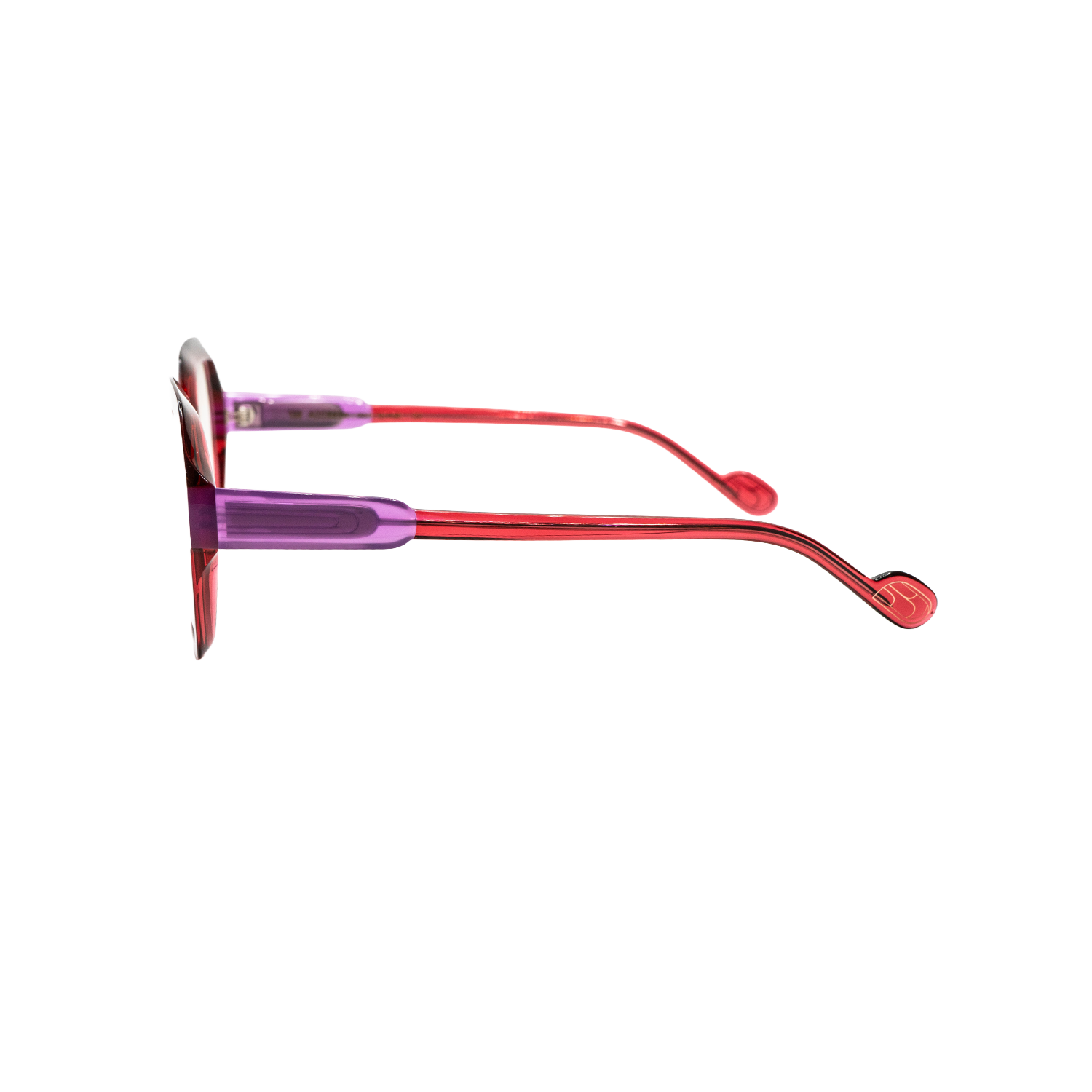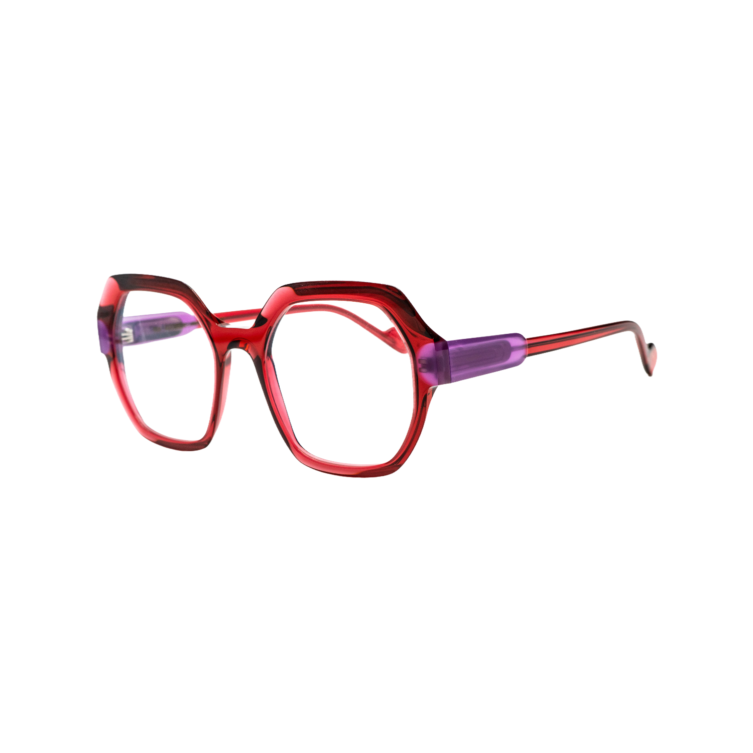 A geometric acetate frame. Known for its play on colors and structure, fitting medium-sized faces perfectly.