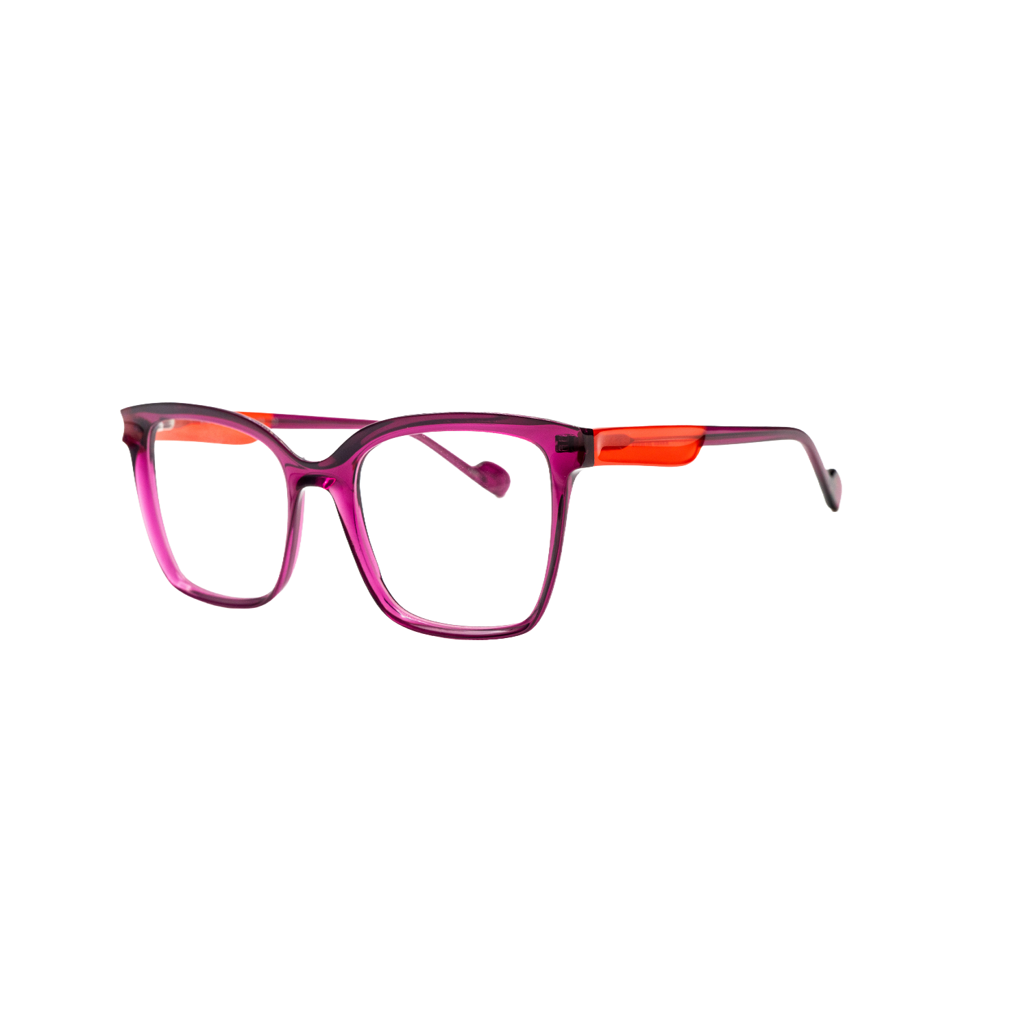 A creative, contemporary square shape with soft profiles. Enhances the face with balance. Features a full acetate rim, often with contrasting details on the temples
