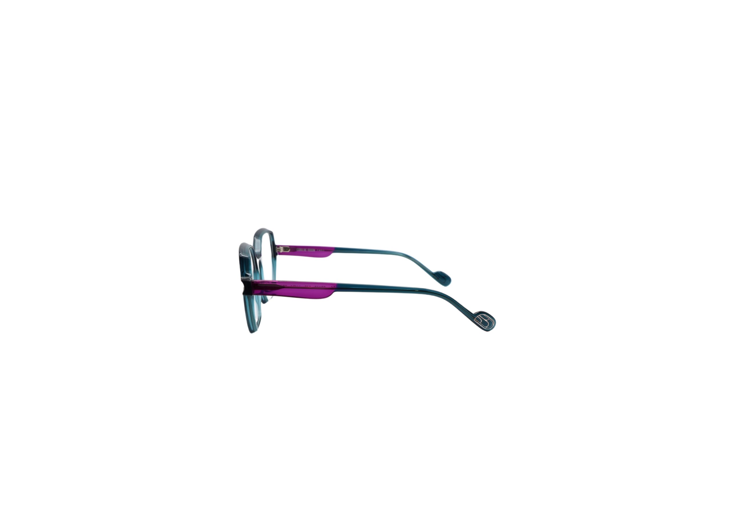In this version the color of the frame is crystal blue in contrast with the pink first part temple. This model of Caroline Abram is very feminine and light.