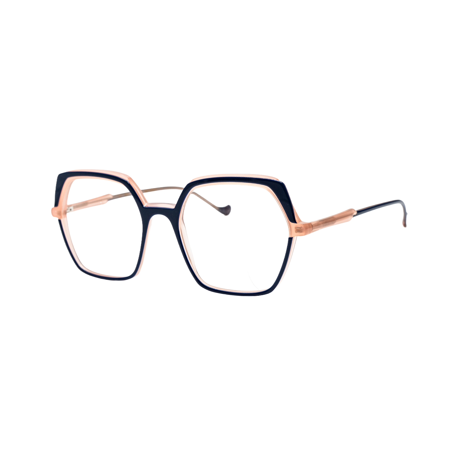 A sophisticated acetate frame with a round/panto shape that offers a softer look. Designed to be lightweight and comfortable while adding a touch of “sensual extravagance.”