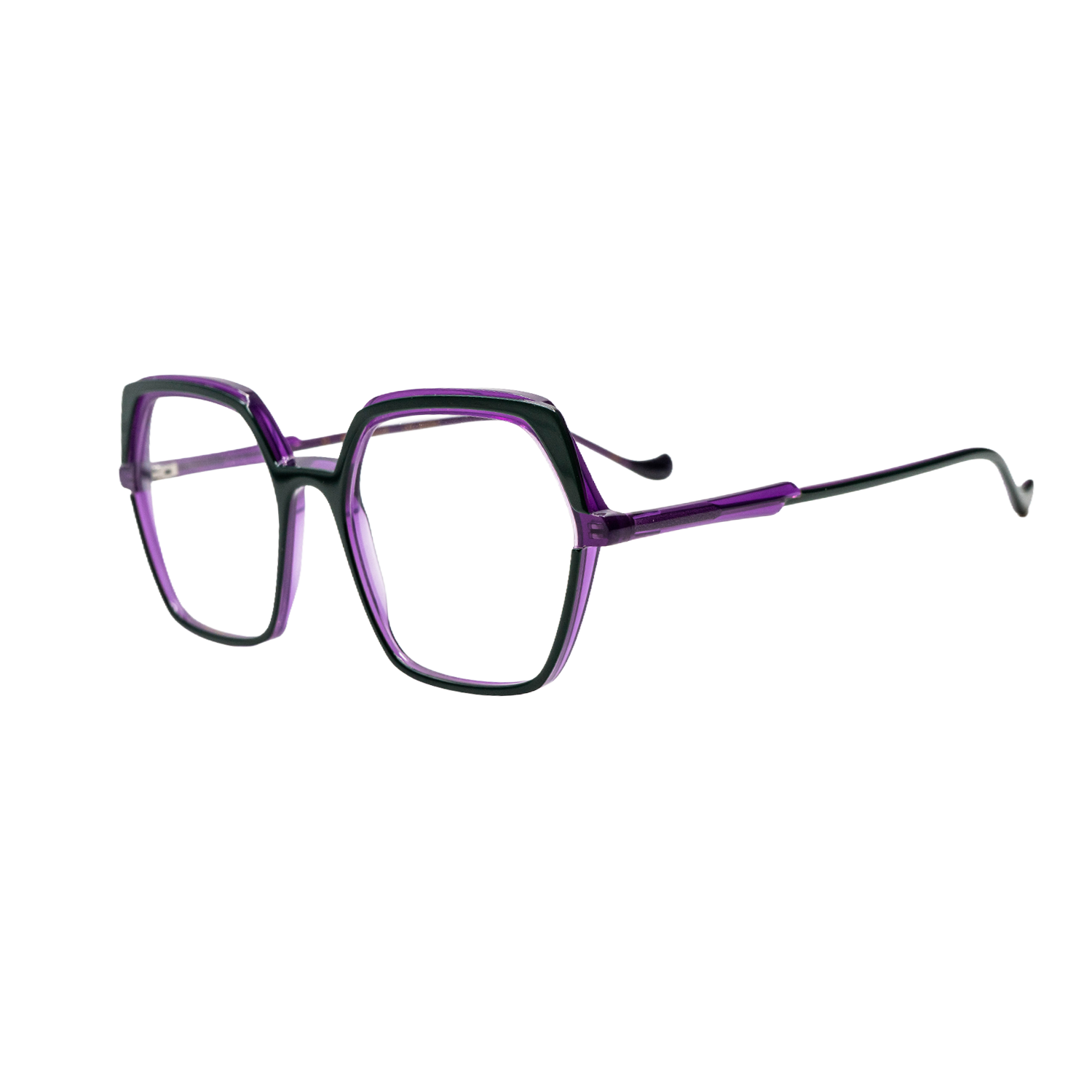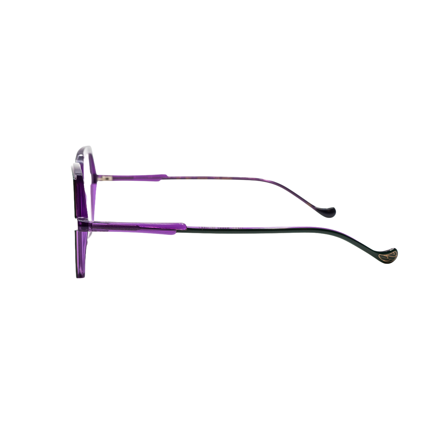 A sophisticated acetate frame with a round/panto shape that offers a softer look. Designed to be lightweight and comfortable while adding a touch of “sensual extravagance.”