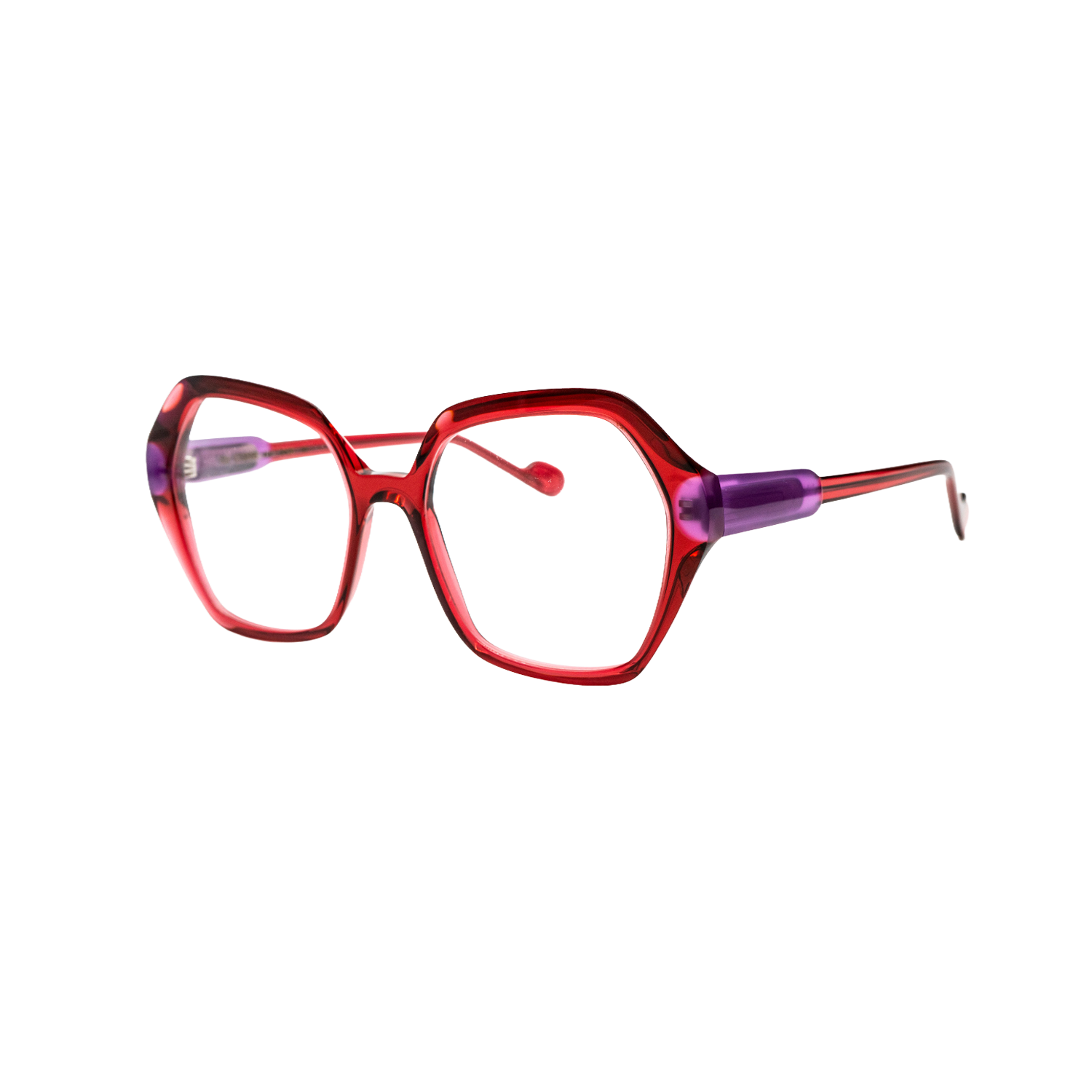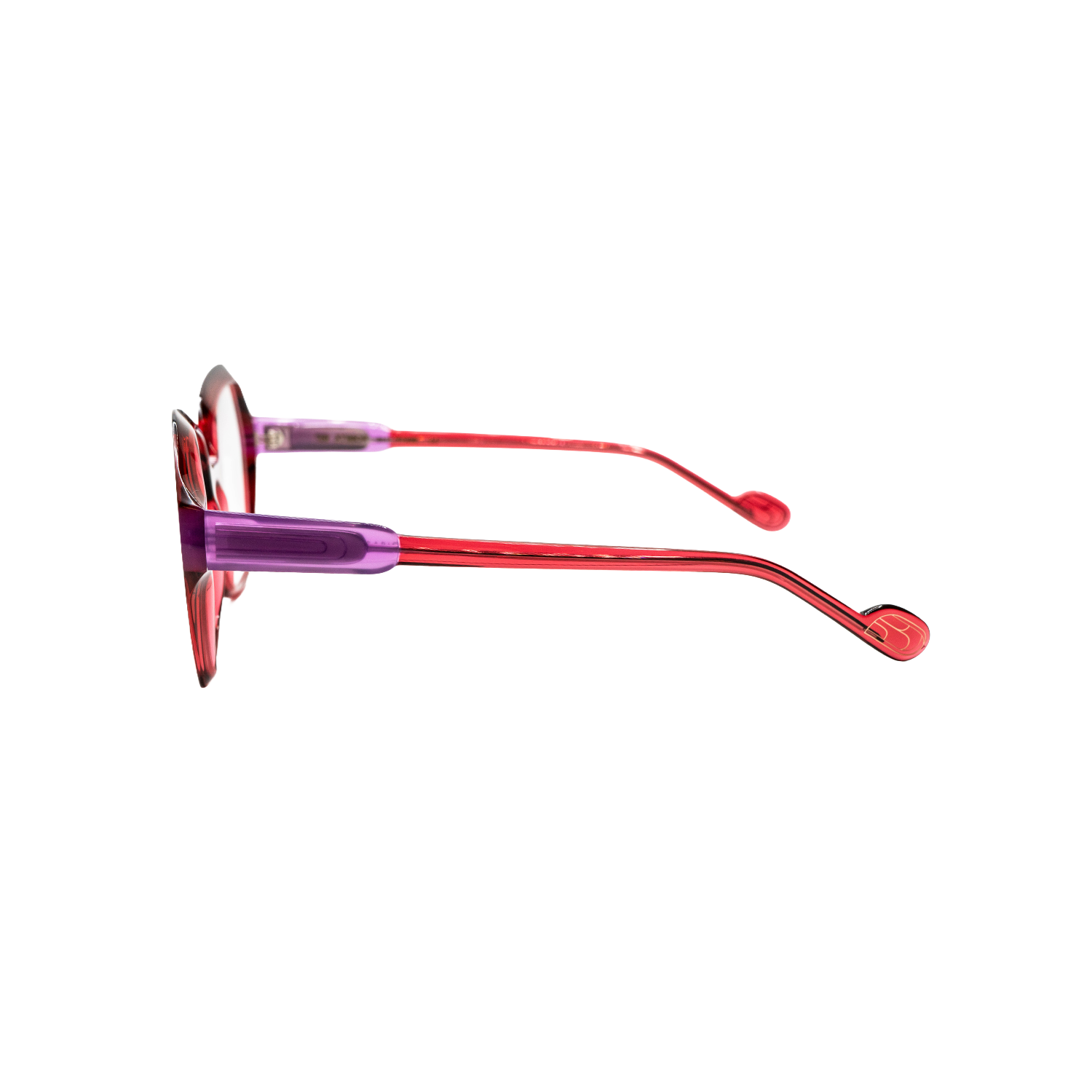 A delicate yet ambitious frame often featuring butterfly or cat-eye curves that bring volume to the face. Part of a collection inspired by 60s fashion with “acid” pop colors.