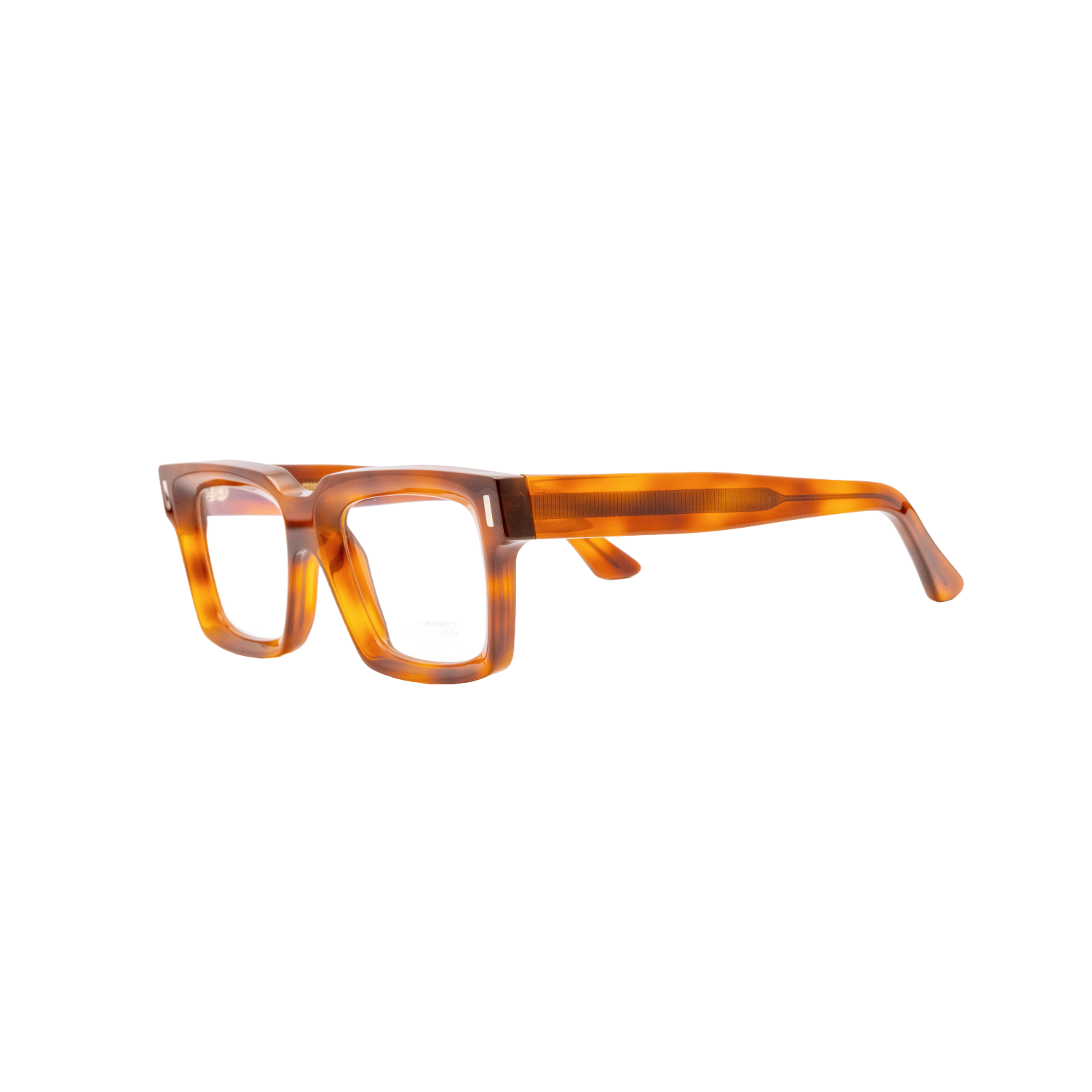 Bullion frontal pins 7-barrel hinges Fender temples Deco core wire Logo engraved on inner temple Handcrafted in Italy