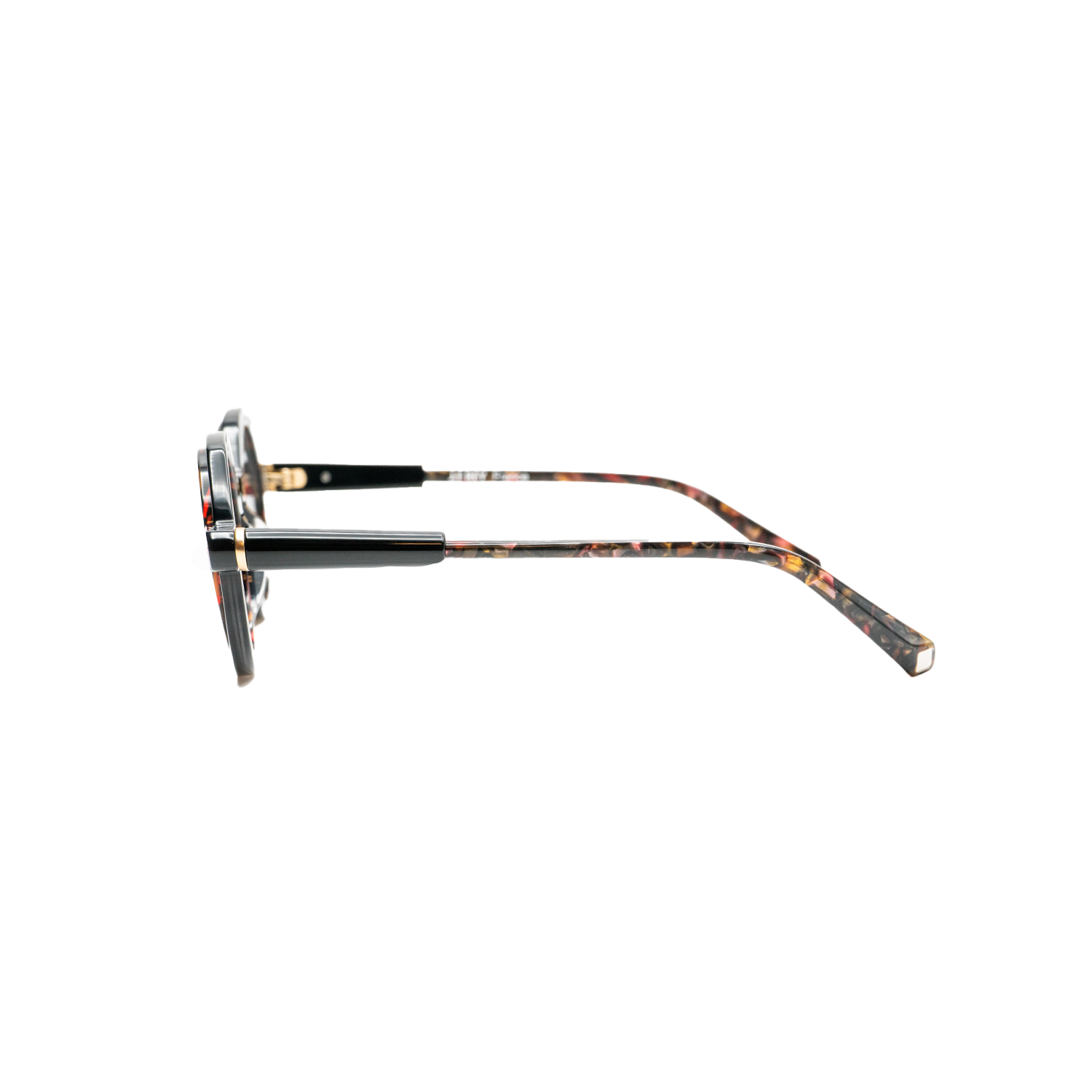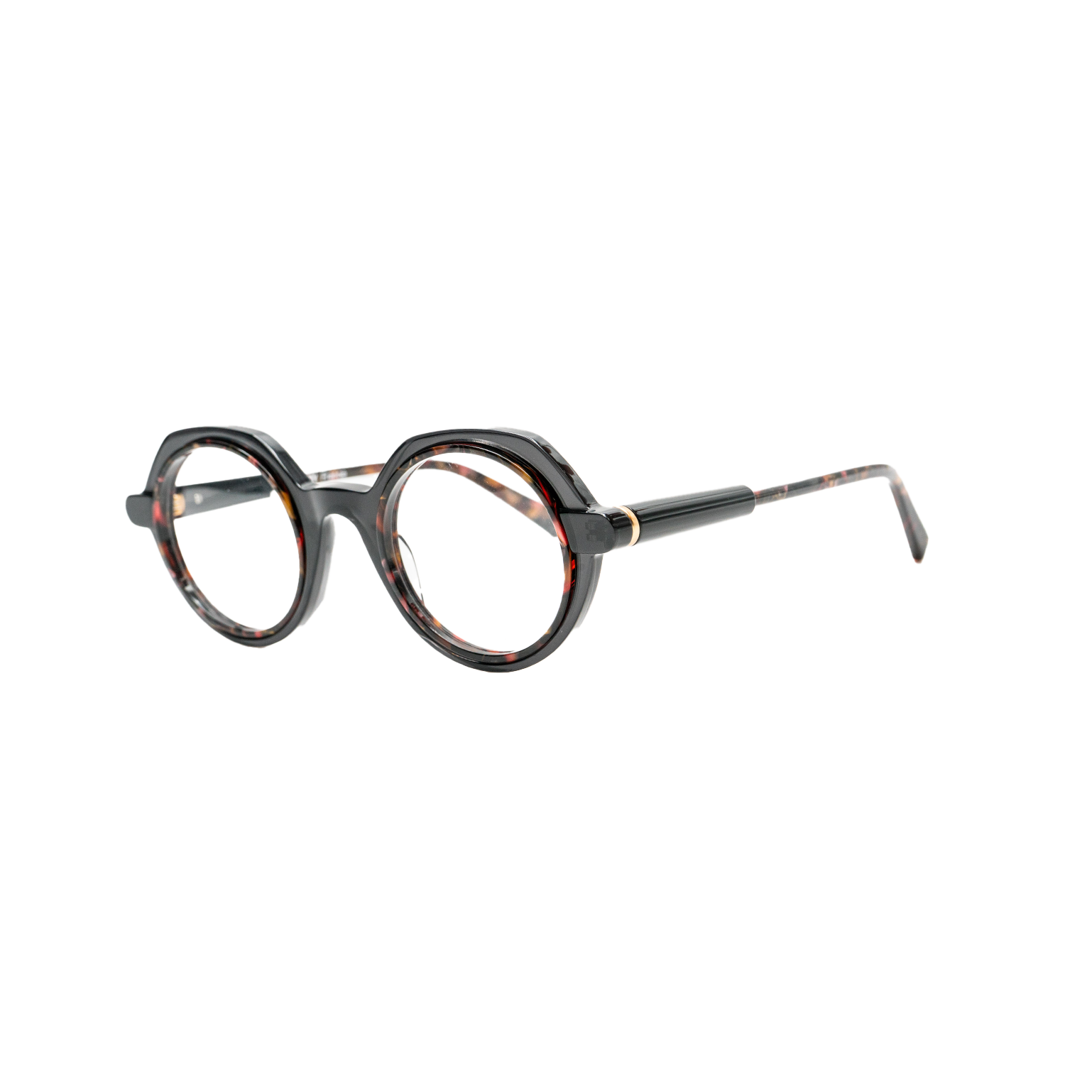 A bold, geometric design with a strong visual presence. It plays on the contrast between material thickness and lightness. Often features graphic decorative additions on the outer edges and multicolored details on the temples.
