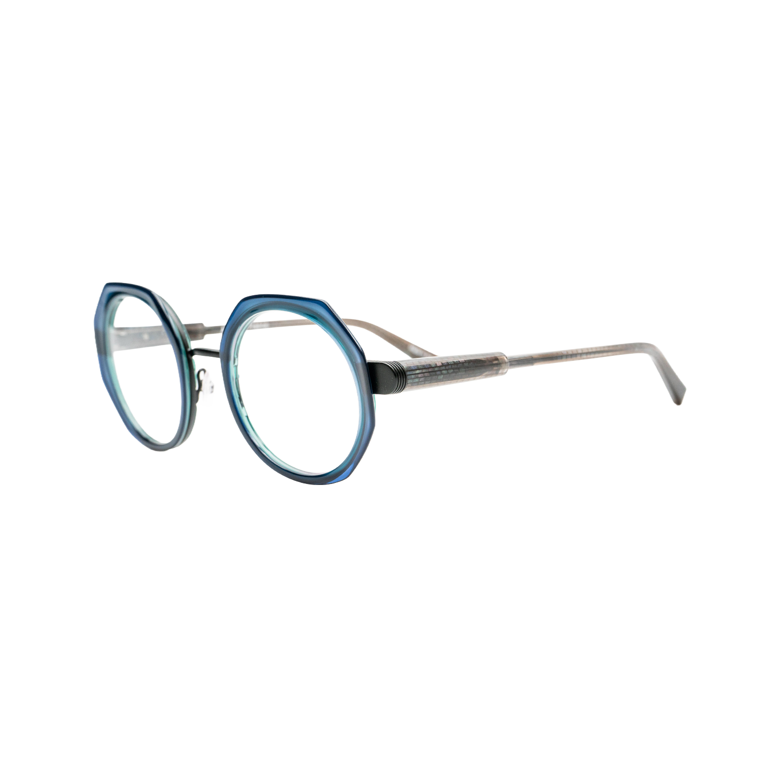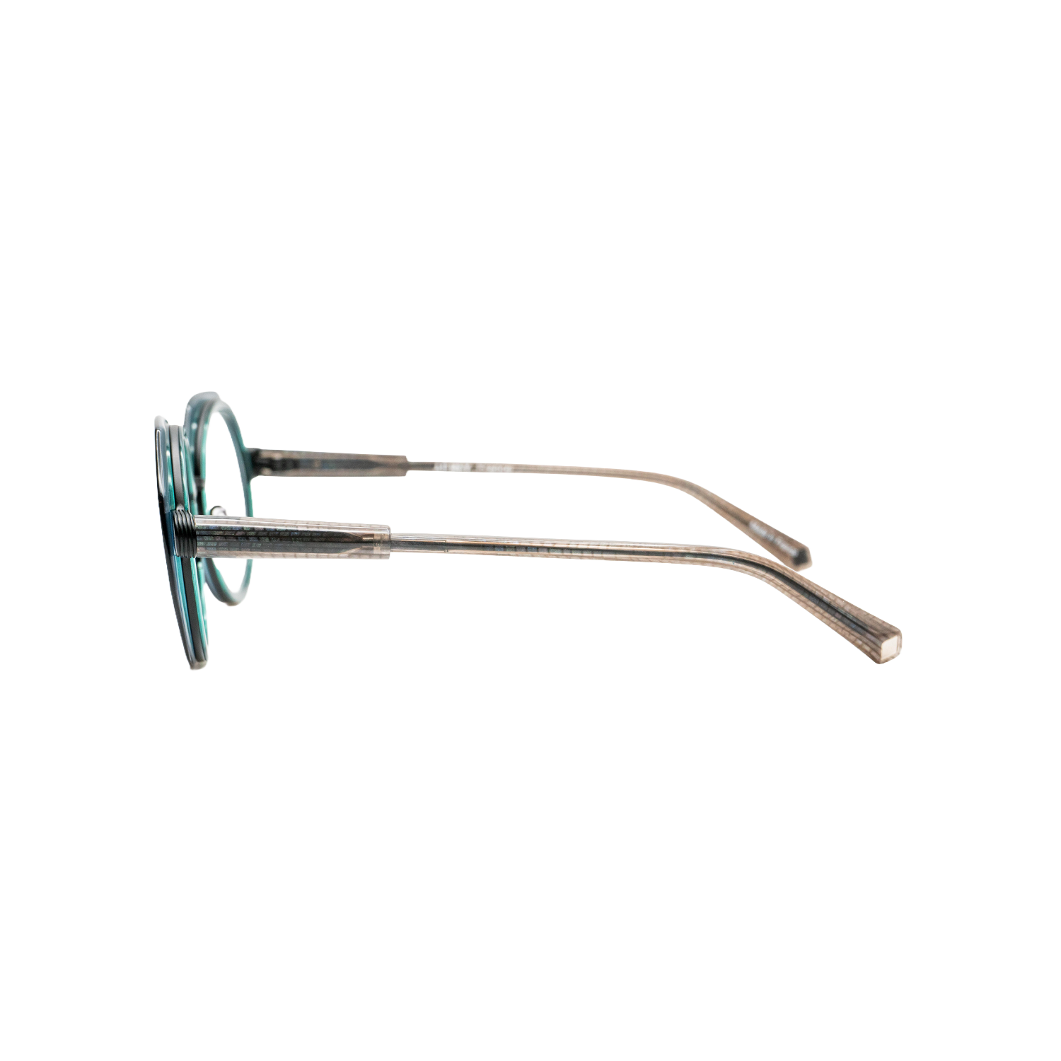 Part of the “Allure of Metal” collection. A round, feminine frame distinguished by embossed colored metal with subtle acetate inserts. Plays on the contrast between the finesse of the structure and the power of color.