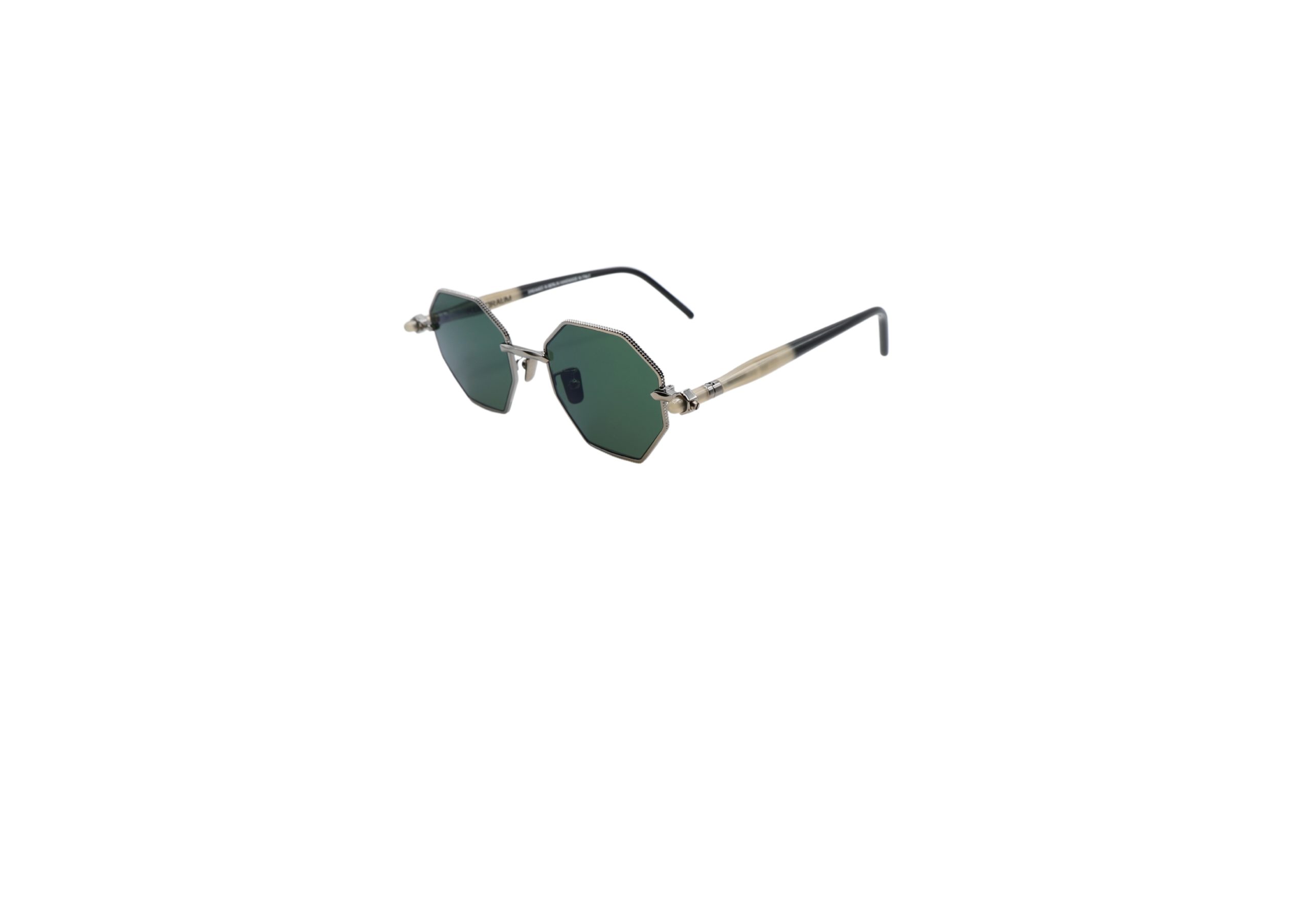 The octagonal lenses of the P74 are encased in a sophisticated silhouette crafted from metal and composed of three refined elements: two bolt-like sides and a multifaceted bridge, each hand-polished to enhance the gleaming details.